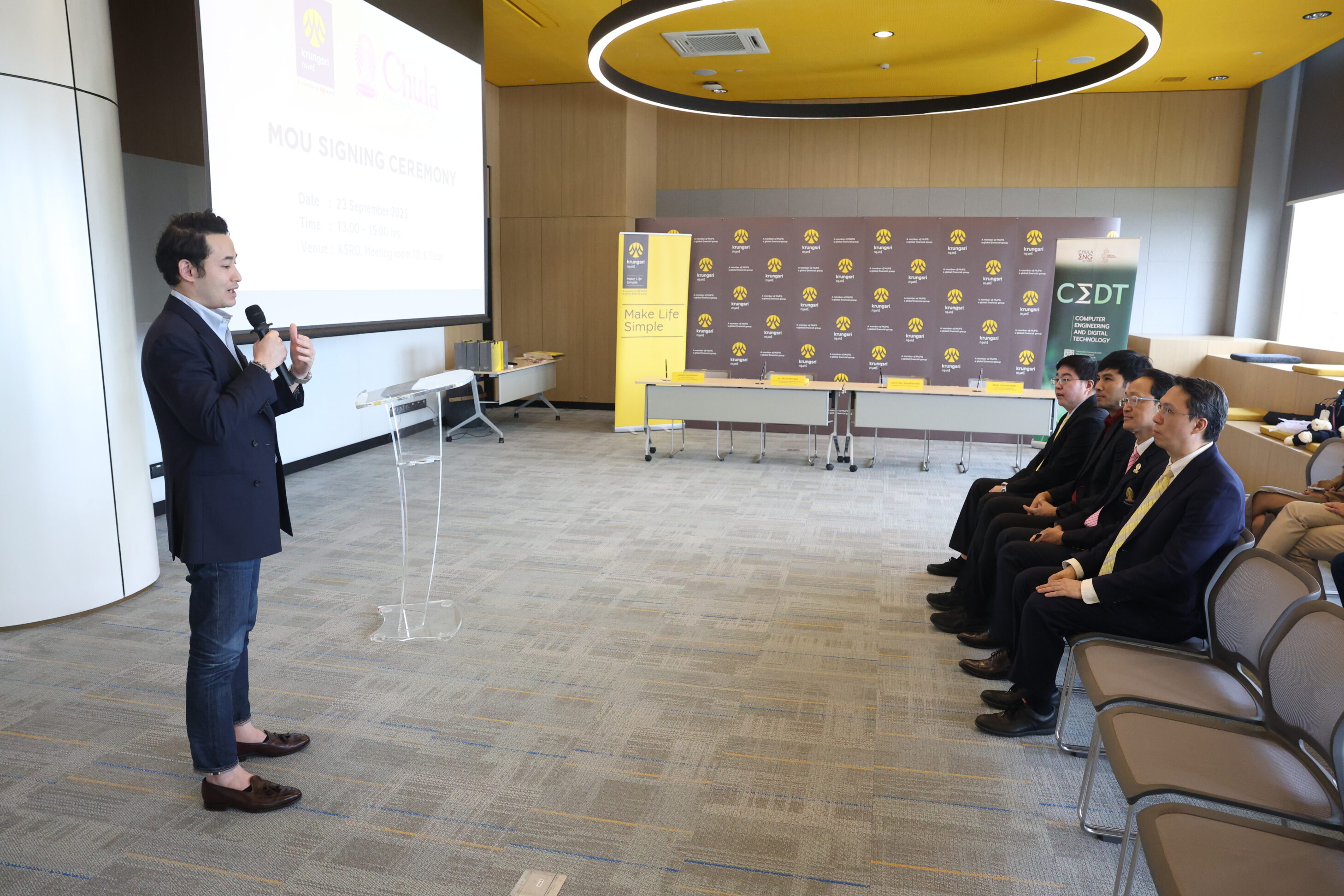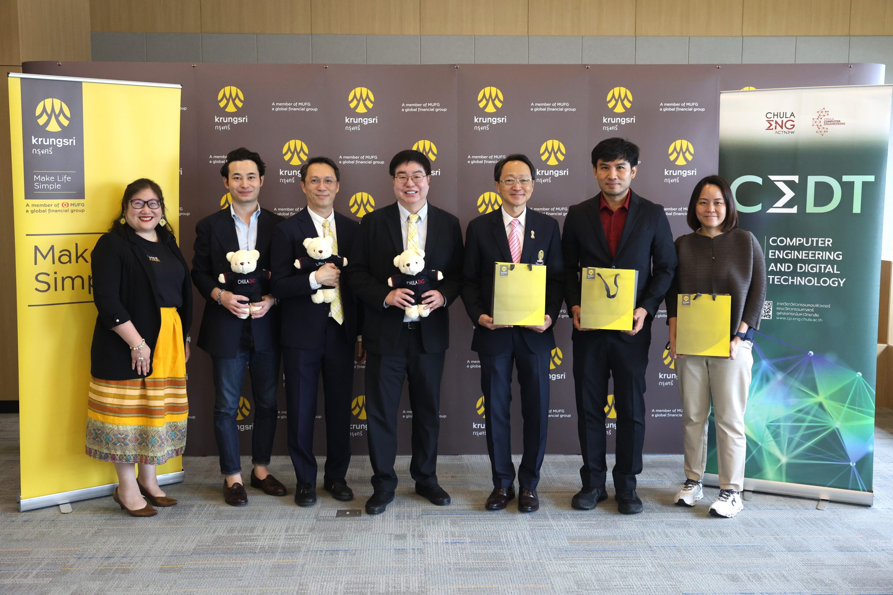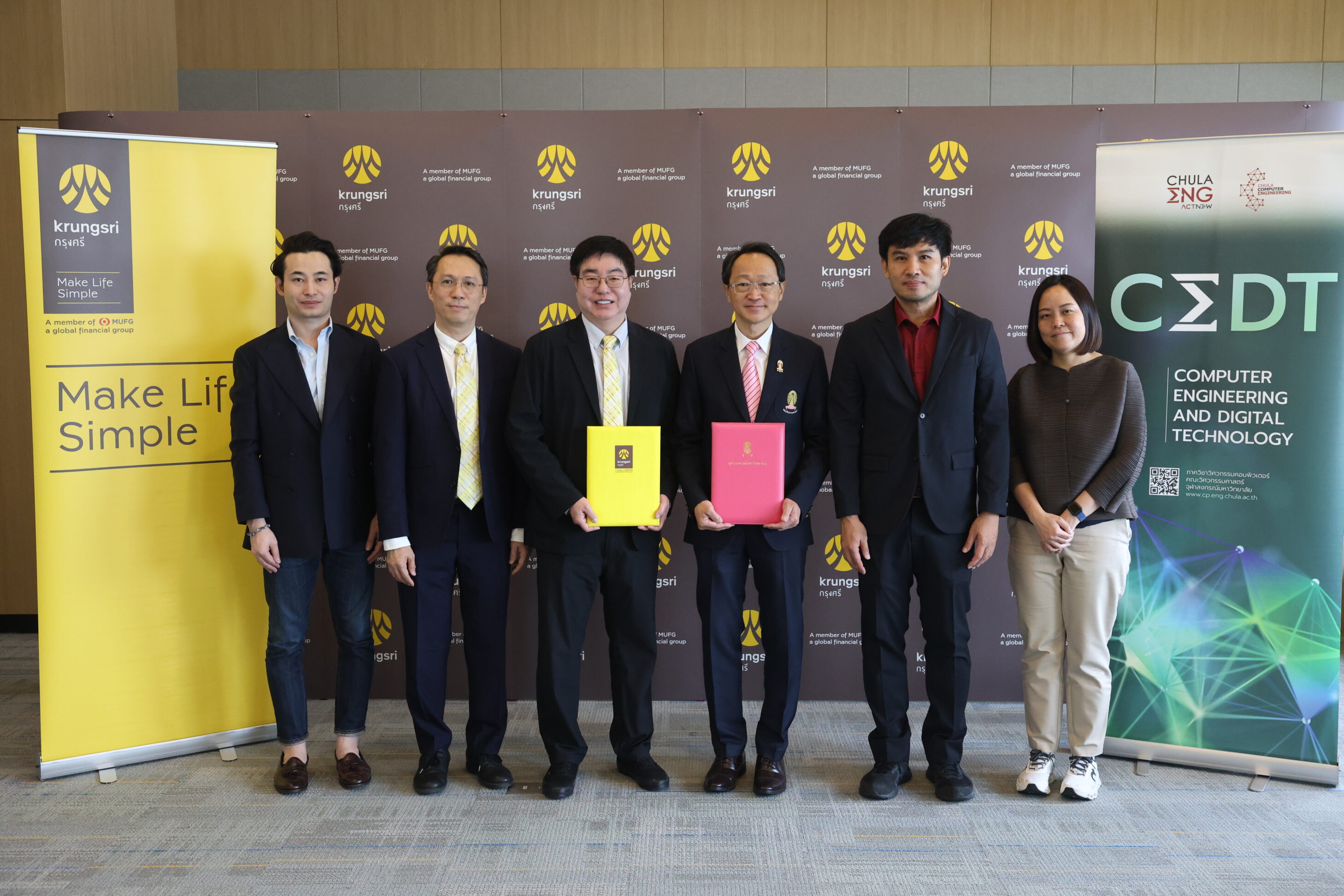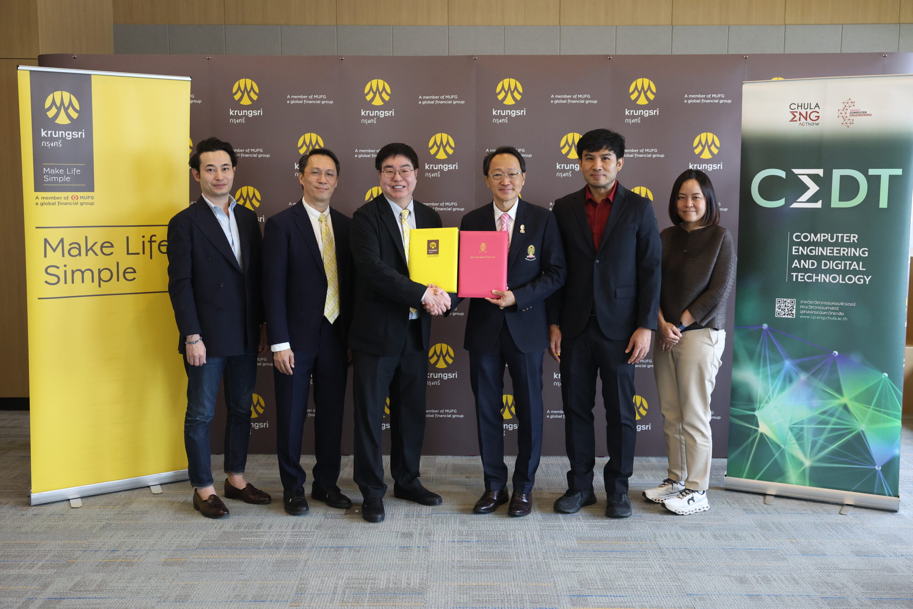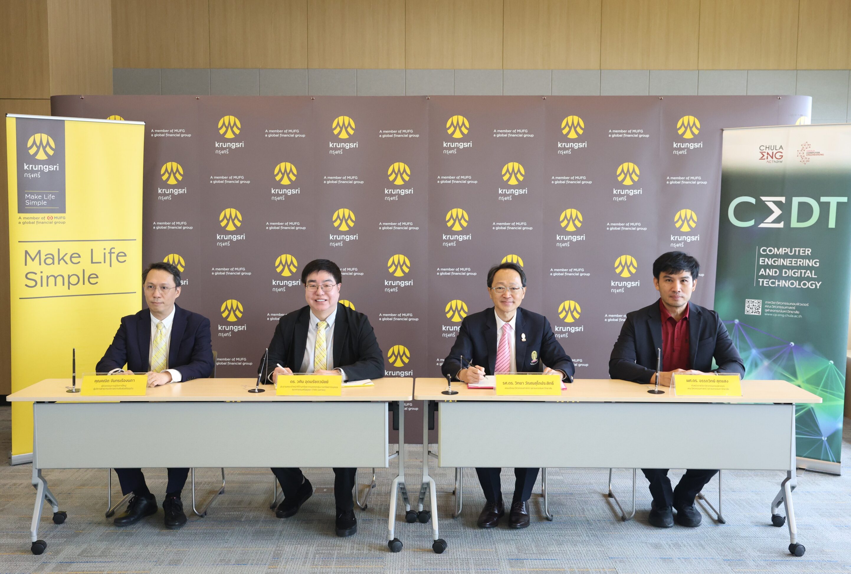 ข่าวสาร ภาควิชาวิศวกรรมคอมพิวเตอร์ คณะวิศวกรรมศาสตร์ จุฬาลงกรณ์มหาวิทยาลัย จับมือกับ ธนาคารกรุงศรีอยุธยา จำกัด (มหาชน) ขับเคลื่อนการจัดการศึกษาให้ทันสมัย สอดรับกับความก้าวหน้าทางเทคโนโลยี Tweet October 7, 2025 ความสำเร็จ Tag: CEDT, CPCU, CUCA, MOU, วิศวะคอมจุฬา ภาควิชาวิศวกรรมคอมพิวเตอร์ คณะวิศวกรรมศาสตร์ จุฬาลงกรณ์มหาวิทยาลัย จับมือกับ ธนาคารกรุงศรีอยุธยา จำกัด (มหาชน) ขับเคลื่อนการจัดการศึกษาให้ทันสมัย สอดรับกับความก้าวหน้าทางเทคโนโลยี วันอังคารที่ 23 กันยายน 2568 คณะวิศวกรรมศาสตร์ จุฬาลงกรณ์มหาวิทยาลัย ได้ร่วมลงนามบันทึกข้อตกลงความร่วมมือกับ ธนาคารกรุงศรีอยุธยา จำกัด (มหาชน) ในหลักสูตรวิศวกรรมศาสตรบัณฑิต สาขาวิชาวิศวกรรมคอมพิวเตอร์ และเทคโนโลยีดิจิทัล (Bachelor of Engineering in Computer Engineering and Digital Technology) มุ่งยกระดับศักยภาพบุคลากรด้านวิศวกรรมคอมพิวเตอร์และเทคโนโลยีดิจิทัลอย่างเป็นรูปธรรม โดยให้ความสำคัญกับการบูรณาการความร่วมมือระหว่างสถาบันการศึกษาและภาคเอกชน เพื่อส่งเสริมการเรียนรู้ตลอดชีวิต และร่วมกันวางรากฐานที่แข็งแกร่งสำหรับระบบการศึกษาในสาขาวิศวกรรมและเทคโนโลยีในอนาคต พิธีลงนามความร่วมมือในครั้งนี้ได้รับเกียรติจาก รองศาสตราจารย์ ดร.วิทยา วัณณสุโภประสิทธิ์ คณบดี คณะวิศวกรรมศาสตร์ และ ดร.วศิน อุดมรัชตวนิชย์ ประธานคณะเจ้าหน้าที่ด้านทรัพยากรบุคคล ธนาคารกรุงศรีอยุธยา จำกัด (มหาชน)เป็นผู้ลงนาม พร้อมด้วย ผู้ช่วยศาสตราจารย์ ดร.อรรถวิทย์ สุดแสง หัวหน้าภาควิชาวิศวกรรมคอมพิวเตอร์ และ คุณคณิต จันทรเรืองนภา ผู้ช่วยกรรมการผู้จัดการใหญ่ ผู้บริหารสายงานบริหารความสัมพันธ์กับธุรกิจ ธนาคารกรุงศรีอยุธยา จำกัด (มหาชน) ร่วมเป็นสักขีพยาน ธนาคารกรุงศรีอยุธยา จำกัด (มหาชน) เป็นหนึ่งในธนาคารพาณิชย์ขนาดใหญ่ของประเทศไทย ติดอันดับ 5 ของประเทศในด้านมูลค่าสินทรัพย์ สินเชื่อ และเงินฝาก มีจุดเด่นที่การเป็นส่วนหนึ่งของเครือข่ายการเงินระดับโลก Mitsubishi UFJ Financial Group (MUFG) จากประเทศญี่ปุ่น ทำให้ได้รับการสนับสนุนทั้งด้านเงินทุน ความรู้ และนวัตกรรมการเงินสมัยใหม่ ธนาคารมีความแข็งแกร่งด้านผลิตภัณฑ์สินเชื่อบุคคล บัตรเครดิต และสินเชื่อรถยนต์ พร้อมทั้งขยายบริการครบวงจรทั้งลูกค้าบุคคล เอสเอ็มอี และลูกค้ารายใหญ่ อีกทั้งยังมีเครือข่ายสาขาครอบคลุมทั่วประเทศ ควบคู่กับการพัฒนาบริการดิจิทัลที่ทันสมัย เช่น Krungsri Mobile App และ Krungsri Online จึงตอบโจทย์ทั้งการเงินส่วนบุคคลและธุรกิจได้อย่างครบถ้วน พร้อมความมั่นคงและความน่าเชื่อถือในระดับสากล การมีส่วนร่วมของ ธนาคารกรุงศรีอยุธยา จำ