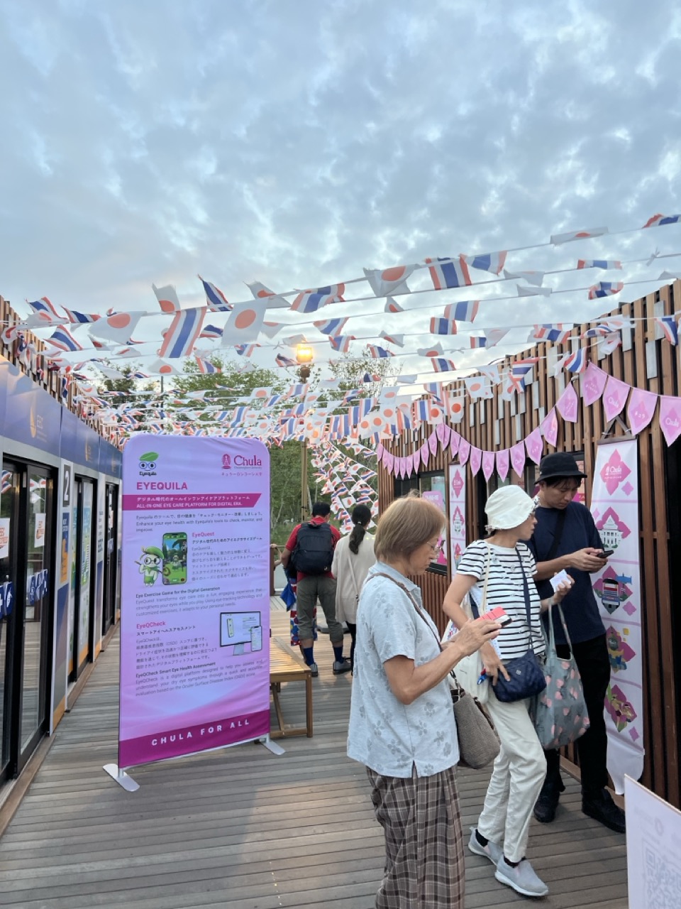 ภายในบูธ ได้นำเสนอนวัตกรรมด้านสุขภาพที่เข้าถึงง่ายและเปิดโอกาสให้ผู้เข้าชมมีส่วนร่วม ซึ่งหนึ่งในนั้นคือผลงานของ Eyequila สตาร์ทอัพด้าน Digital Health & Wellness ที่มุ่งพัฒนาเทคโนโลยีเพื่อการดูแลสายตาในยุคดิจิทัล ผ่านเกมฝึกสายตา EyeQuest ที่ใช้เทคโนโลยี Eye-Tracking เพื่อะป้องกันอาการตาล้าจากการใช้หน้าจอ (Digital Eye Strain) และอาการสายตาสั้น และ EyeQCheck AI-Chatbot เพื่อให้คำปรึกษาสุขภาพทางสายตาซึ่งก่อตั้งโดย นิสิตจากสถาบันนวัตกรรมบูรณาการแห่งจุฬาลงกรณ์ และนิสิตคณะวิศวกรรมศาสตร์ สาขาคอมพิวเตอร์ ในการจัดแสดงครั้งนี้ คุณจินต์จุฑา แซ่อึ่ง (CSII, BAScii 003) และ คุณรัชชานนท์ ถนัดสร้าง (นิสิตชั้นปีที่ 4 สาขาวิชาวิศวกรรมคอมพิวเตอร์ (CP49) ภาควิชาวิศวกรรมคอมพิวเตอร์ คณะวิศวกรรมศาสตร์ ) โดยมี ผศ.ดร. พิตติพล คันธวัฒน์,รศ.ดร. เศรษฐา ปานงาม และ รศ.ดร. เกริก ภิรมย์โสภา เป็น อาจารย์ที่ปรึกษาของนิสิต CP49 ที่เป็นตัวแทนนำเสนอผลงาน