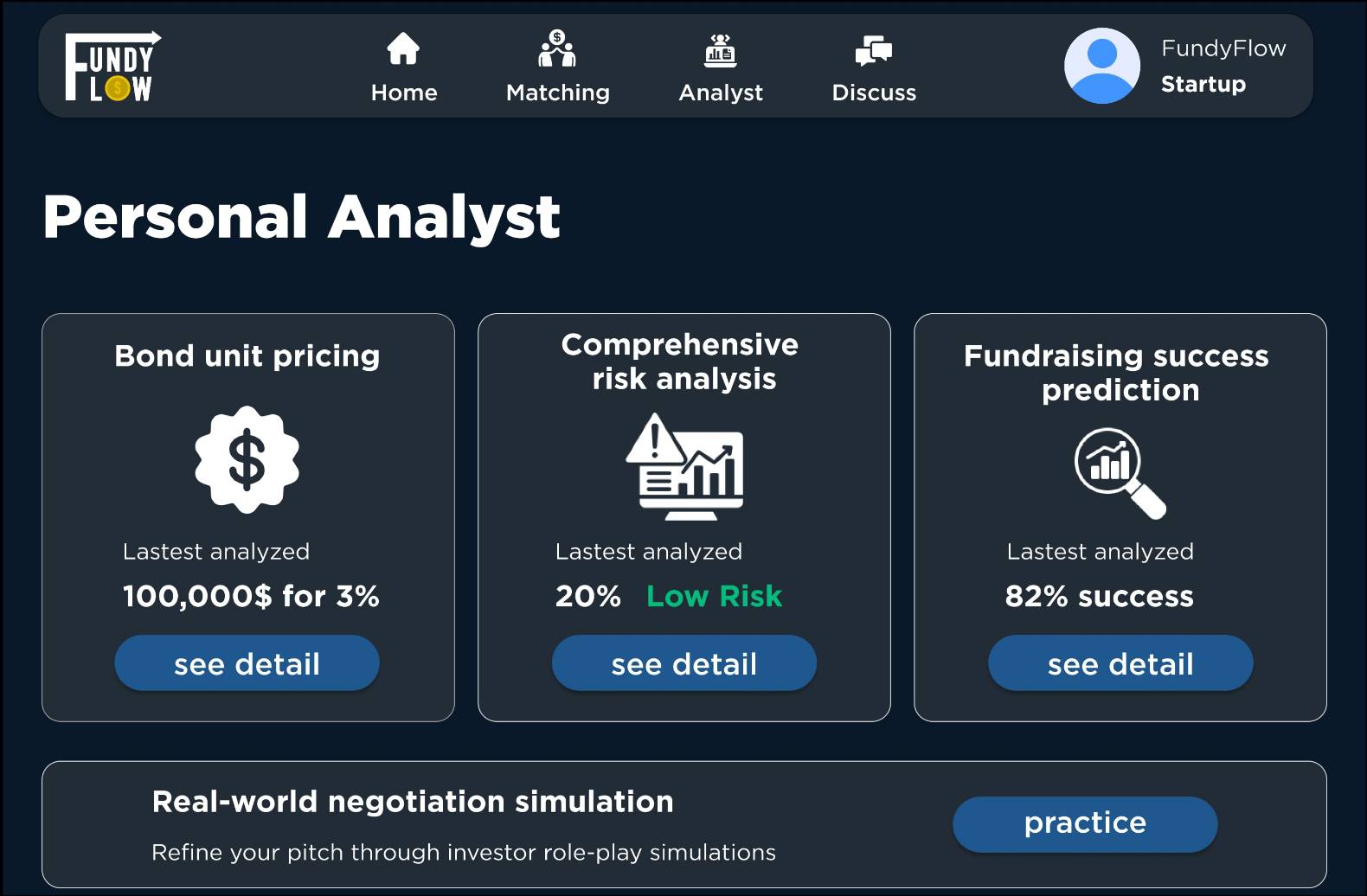โปรเจกต์ที่ใช้ในการแข่งขัน : เป็นแพลตฟอร์มในรูปแบบ Funding Portal ที่ทำหน้าที่เป็นสื่อกลางระหว่างนักลงทุน (Investor) และสตาร์ทอัพ (Startup) โดยมุ่งเน้นการสนับสนุนสตาร์ทอัพหน้าใหม่ในการเข้าถึงแหล่งเงินทุน ผ่านระบบการจับคู่ (Matching) กับนักลงทุนที่มีความสนใจในแนวทางเดียวกัน พร้อมทั้งมีระบบปัญญาประดิษฐ์ (AI) สำหรับการวิเคราะห์ข้อมูลเชิงลึก และผู้ช่วยอัจฉริยะที่ให้คำแนะนำในการพัฒนาสตาร์ทอัพอย่างมีประสิทธิภาพ