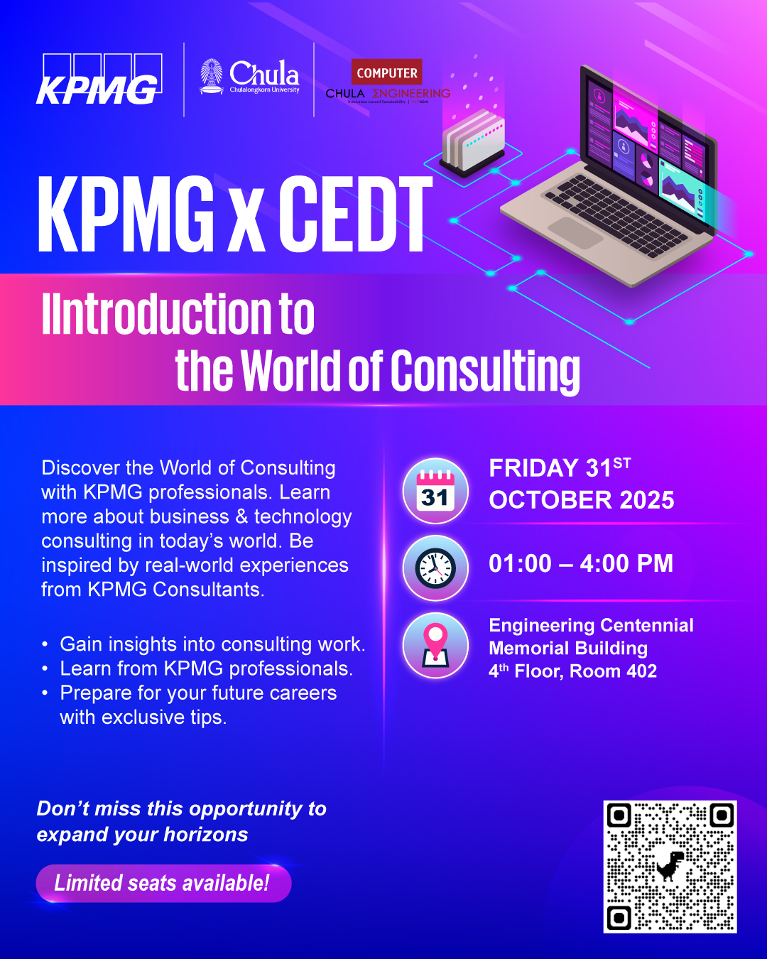 ลิงก์ลงทะเบียนเข้าร่วมกิจกรรมสำหรับนิสิต CP และ CEDT >>>>> https://talent.cedt.community/
