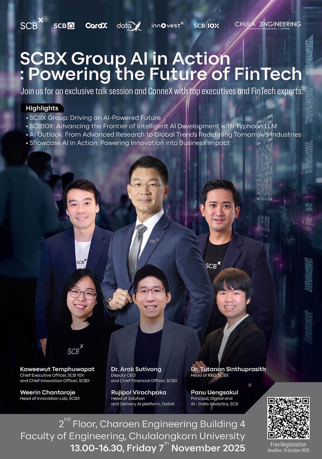 🚀 SCBX Group ชวนทุกคนมาร่วมกิจกรรม Exclusive Talk: “AI in Action – Powering the Future of FinTech” ฟังเบื้องหลังการนำ AI มาขับเคลื่อนนวัตกรรมทางการเงิน สู่การสร้าง Real Business Impact 💥 พร้อมพูดคุยมุมมองจากผู้บริหารและทีมผู้พัฒนา AI ตัวจริง ตัวอย่าง AI Use Case ที่ถูกใช้จริงในองค์กร และถามตอบเตรียมความพร้อมที่สมัครโครงการฝึกงานและสมัครงานอีกด้วย