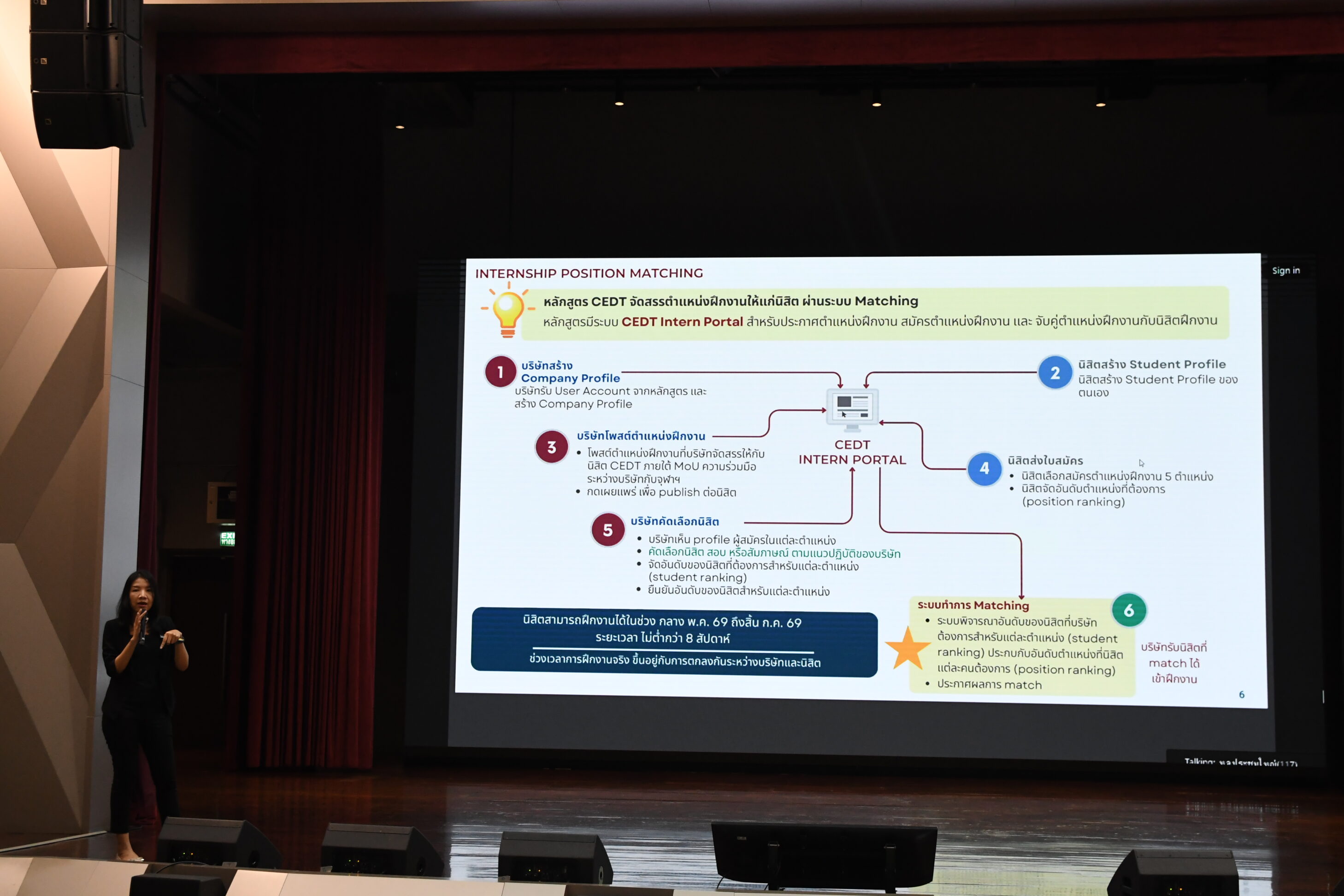 ข่าวสาร ประมวลภาพกิจกรรม Intern KickOff สำหรับนิสิตชั้นปีที่ 1 หลักสูตรวิศวกรรมคอมพิวเตอร์และเทคโนโลยีดิจิทัล (CEDT) Tweet November 12, 2025 กิจกรรมนิสิต, ปริญญาตรี ประมวลภาพกิจกรรม Intern KickOff สำหรับนิสิตชั้นปีที่ 1 หลักสูตรวิศวกรรมคอมพิวเตอร์และเทคโนโลยีดิจิทัล (CEDT) กิจกรรมนี้ได้มอบทั้งความรู้และแรงบันดาลใจ โดยนิสิตได้เรียนรู้ถึงความสำคัญของการฝึกงาน พร้อมเปิดมุมมองใหม่ ๆ ที่จะช่วยเตรียมความพร้อมสู่เส้นทางอาชีพในอนาคต ภายในงาน ผศ.ดร. อรรถวิทย์ สุดแสง เป็นผู้กล่าวเปิดงานและต้อนรับนิสิต ผศ.ดร. ณรงค์เดช กีรติพรานนท์ เป็นผู้บรรยายภาพรวมของการฝึกงานปีที่ผ่านมา อ.ดร. มัชฌิกา อ่องแตง ได้ร่วมชี้แจงขั้นตอนการสมัครฝึกงานผ่าน CEDT Intern Portal ซึ่งถือเป็นแพลตฟอร์มสำคัญสำหรับนิสิต CEDT ในการจัดการและเข้าถึงโอกาสฝึกงานอย่างมีระบบ นอกจากนี้ยังได้รับประสบการณ์ตรงจากรุ่นพี่นิสิต CEDT ที่มาแบ่งปันเคล็ดลับและแนวทางการเตรียมความพร้อมในการยื่นสมัครฝึกงาน เพื่อให้นิสิตเข้าใจทั้งมิติการเรียนรู้และการทำงานจริงอย่างรอบด้าน ข่าว Pages cp.eng.chula.ac.th MOU ความร่วมมือกับหลักสูตร CEDT Search Results TABEE 2561 – 2563 TABEE 2564 – 2569 TCAS1 : Portfolio CEDT TCAS1: Portfolio CP TCAS2 : Quota CEDT TCAS3 : Admission CEDT TCAS3: Admission CP ขั้นตอนการเขียนคำร้องของนิสิต ระดับบัณฑิตศึกษา งานเฉลิมฉลองครบรอบ 50 ปี ภาควิชาวิศวกรรมคอมพิวเตอร์ ดาวน์โหลดเอกสารระดับบัณฑิตศึกษา ดาวน์โหลดแบบฟอร์มสำหรับนิสิต ติดต่อเรา ทุนการศึกษาจากบัณฑิตวิทยาลัยและภาควิชาวิศวกรรมคอมพิวเตอร์ นิสิตปัจจุบัน FaceRecognition Register System FAQ บัณฑิตศึกษา บัณฑิตศึกษา ป.เอก CD หลักสูตรเดิม พ.ศ.2558 ป.เอก วิศวกรรมคอมพิวเตอร์ (CD) ป.โท CM หลักสูตรเดิม พ.ศ.2561 ป.โท CS หลักสูตรเดิม พ.ศ.2561 ป.โท SE หลักสูตรเดิม พ.ศ.2561 ป.โท วิทยาศาสตร์คอมพิวเตอร์ (CS) ป.โท วิศวกรรมคอมพิวเตอร์ (CM) ป.โท วิศวกรรมซอฟต์แวร์ (SE) ประกาศ/ระเบียบ/ข้อบังคับ บัณฑิตศึกษา เอกสารเกี่ยวกับวิทยานิพนธ์ ปริญญาตรี ดาวน์โหลดเอกสารทุนการศึกษาและแบบฟอร์มต่างๆระดับปริญญาตรี ฝึกงาน – หางาน ป.ตรี วิศวกรรมคอมพิวเตอร์และเทคโนโลยีดิจิทัล ผลงานของเรา ผู้สนใจ ตำรา บรรยากาศภาควิชา ป.ตรี CP หลักสูตร พ.ศ.2559 ป.ตรี CP หลักสูตร พ.ศ.2561 ป.ตรี วิศวกรรมคอมพิวเตอร์ (CP) รู้จักวิศวกรรมคอมพิวเตอร์ สำหรับผู้สมัครหลักสูตร วศ.ด. และ วศ.ม. วิศวกรรมคอมพิวเตอร์ – ดาวน์โหลดเอกสารการเลือกหัวข้อวิจัย ระบบคำร้องของนิสิตงานทะเบียนและประเมินผล คณะวิศวกรรมศาสตร์ จุฬาฯ วิจัย / บริการวิชาการ ห้องปฏิบัติการวิจัย โครงการวิจัย สำหรับผู้สมัครหลักสูตร วท.ม. วิทยาศาสตร์คอมพิวเตอร์ (CS) – ดาวน์โหลดแบบฟอร์มประกอบการสมัครหลักสูตร CS สำหรับผู้สมัครหลักสูตร 
