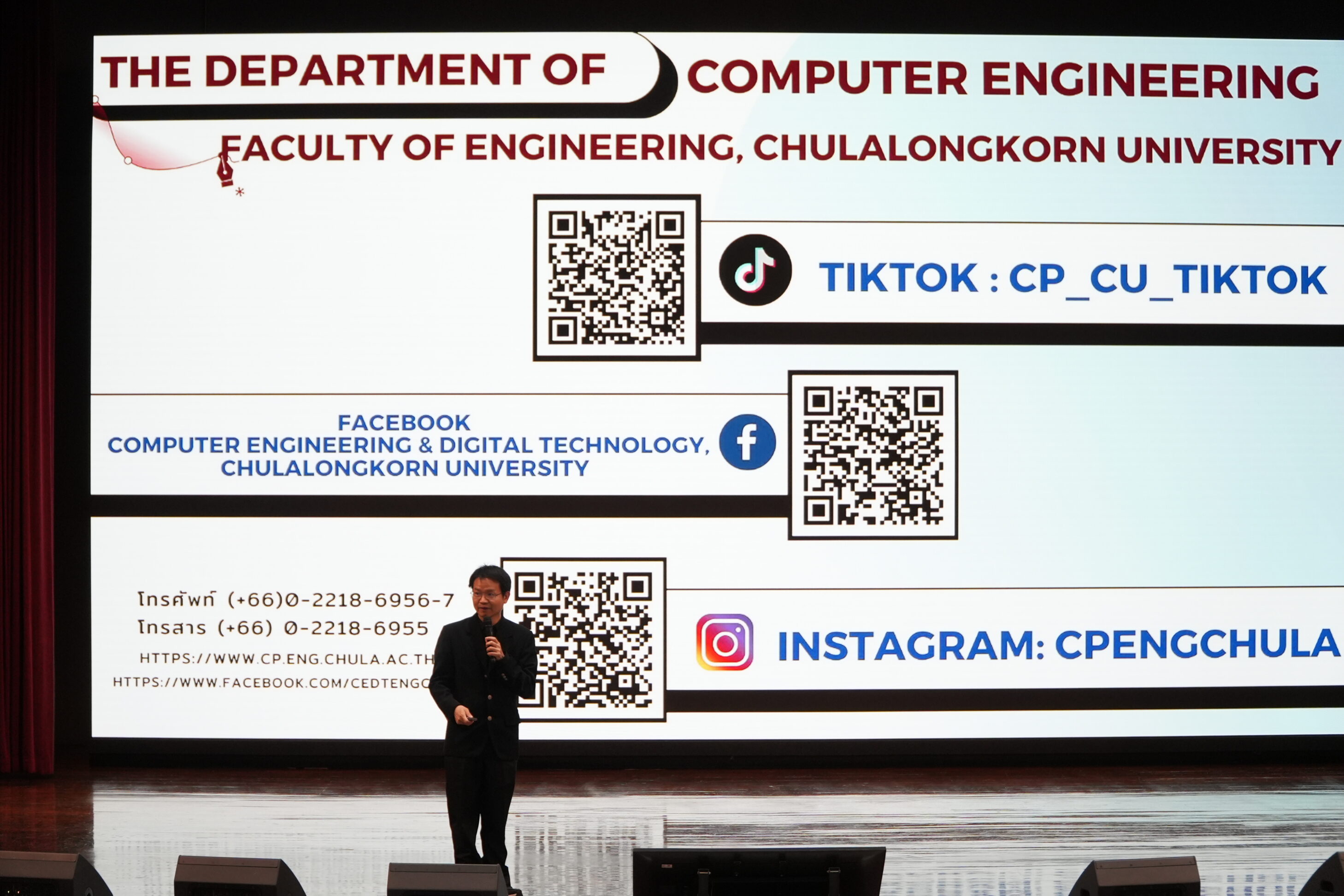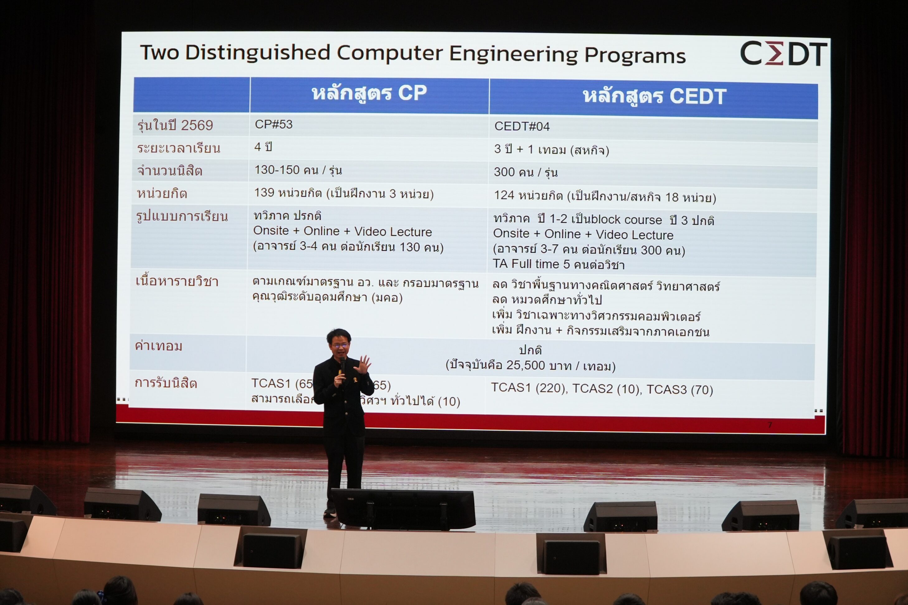 ข่าวสาร ภาควิชาวิศวกรรมคอมพิวเตอร์ให้การต้อนรับคณะครูและนักเรียนจากโรงเรียนเรณูนครวิทยานุกูลและโรงเรียนอุดมดรุณีเข้าเยี่ยมชมคณะวิศวกรรมศาสตร์และรับฟังหลักสูตรของภาควิชาวิศวกรรมคอมพิวเตอร์ Tweet November 20, 2025 ทั่วไป 🥳ภาควิชาวิศวกรรมคอมพิวเตอร์ให้การต้อนรับคณะครูและนักเรียนจากโรงเรียนเรณูนครวิทยานุกูลและโรงเรียนอุดมดรุณี เข้าเยี่ยมชมคณะวิศวกรรมศาสตร์และรับฟังหลักสูตรของภาควิชาวิศวกรรมคอมพิวเตอร์🥳 📌วันพฤหัสบดีที่ 20 พฤศจิกายน 2568 📌 ผศ.ดร.ชาญณรงค์ บาลมงคล ผู้ช่วยคณบดีฝ่ายวิชาการ คณะวิศวกรรมศาสตร์อและ รศ.ดร.วิษณุ โครตจรัส รองหัวหน้าภาควิชาวิศวกรรมคอมพิวเตอร์ ฝ่ายกิจการนิสิต และ คุณพิสิษฐ์ คุณจักร หัวหน้ากลุ่มภารกิจบริหารและกายภาพ คณะฯ ให้การต้อนรับ คณะครูและนักเรียน จาก โรงเรียนเรณูนครวิทยานุกูล จ.นครพนม ครู 10 นักเรียน 100 และ โรงเรียนอุดมดรุณี จ.สุโขทัย ครู 7 คน นักเรียน 58 คน รวม 175 คน โดยมี ผศ.ดร.ณรงค์เดช กีรติพรานนท์ อาจารย์ประจำภาควิชาวิศวกรรมคอมพิวเตอร์และประธานหลักสูตรวิศวกรรมคอมพิวเตอร์และเทคโนโลยีดิจิทัล เป็นตัวแทนของภาควิชาฯ ในการบรรยายครั้งนี้ ณ หอประชุม Intania คณะวิศวกรรมศาสตร์ จุฬาลงกรณ์มหาวิทยาลัย ในการเข้าเยี่ยมชมครั้งนี้มีวัตถุประสงค์เพื่อรับฟังข้อมูลหลักสูตรการเรียนการสอนของคณะวิศวกรรมศาสตร์ ในส่วนการบรรยายครั้งนี้ของภาควิชาวิศวกรรมคอมพิวเตอร์ คือ หลักสูตรวิศวกรรมคอมพิวเตอร์ (CP) และหลักสูตรวิศวกรรมคอมพิวเตอร์และเทคโนโลยีดิจิทัล (CEDT Sandbox ) เพื่อให้นักเรียนได้รับข้อมูลความรู้ที่เป็นประโยชน์จากการเรียนรู้ตลอดกิจกรรม พร้อมเจ้าหน้าที่คณะฯ และ ภาควิชาฯ ให้การต้อนรับ ข่าว Pages -TCAS1: Portfolio CP -TCAS3: Admission CP MOU ความร่วมมือกับหลักสูตร CEDT Search Results TABEE 2561 – 2563 TABEE 2564 – 2569 TCAS1 : Portfolio CEDT TCAS2 : Quota CEDT TCAS3 : Admission CEDT ขั้นตอนการเขียนคำร้องของนิสิต ระดับบัณฑิตศึกษา ดาวน์โหลดเอกสารระดับบัณฑิตศึกษา ดาวน์โหลดแบบฟอร์มสำหรับนิสิต ติดต่อเรา ทุนการศึกษาจากบัณฑิตวิทยาลัยและภาควิชาวิศวกรรมคอมพิวเตอร์ นิสิตปัจจุบัน FaceRecognition Register System FAQ บัณฑิตศึกษา บัณฑิตศึกษา ป.เอก CD หลักสูตรเดิม พ.ศ.2558 ป.เอก วิศวกรรมคอมพิวเตอร์ (CD) ป.โท CM หลักสูตรเดิม พ.ศ.2561 ป.โท CS หลักสูตรเดิม พ.ศ.2561 ป.โท SE หลักสูตรเดิม พ.ศ.2561 ป.โท วิทยาศาสตร์คอมพิวเตอร์ (CS) ป.โท วิศวกรรมคอมพิวเตอร์ (CM) ป.โท วิศวกรรมซอฟต์แวร์ (SE) ประกาศ/ระเบียบ/ข้อบังคับ บัณฑิตศึกษา เอกสารเกี่ยวกับวิทยานิพนธ์ ปริญญาตรี ดาวน์โหลดเอกสารทุนการศึกษาและแบบฟอร์มต่างๆระดับปริญญาตรี ฝึกงาน – หางาน ป.ตรี วิศวกรรมคอมพิวเตอร์และเทคโนโลยีดิจิทัล ผลงานของเ