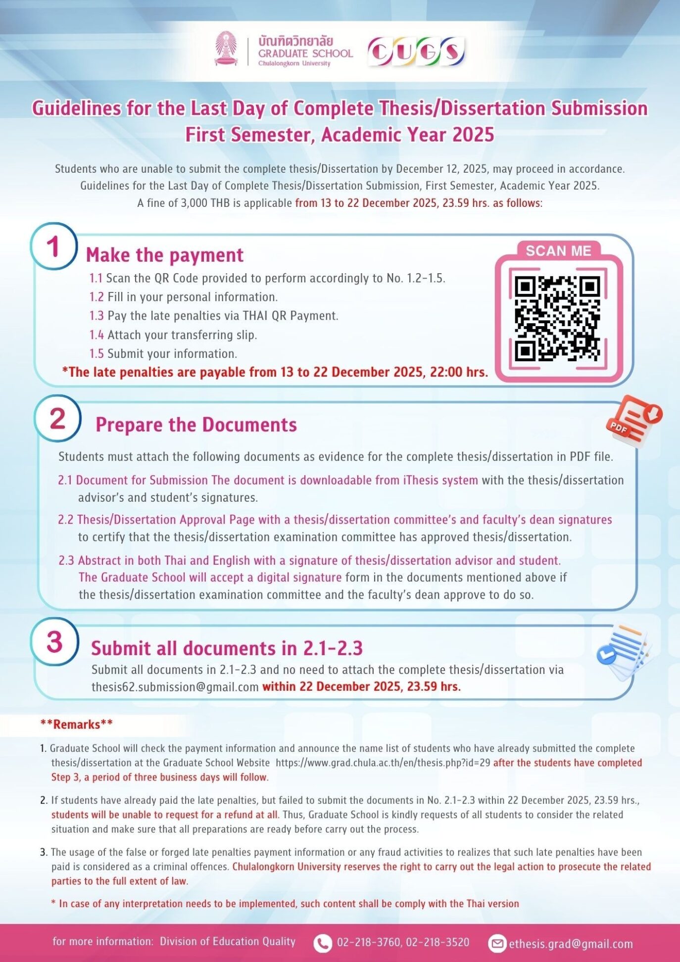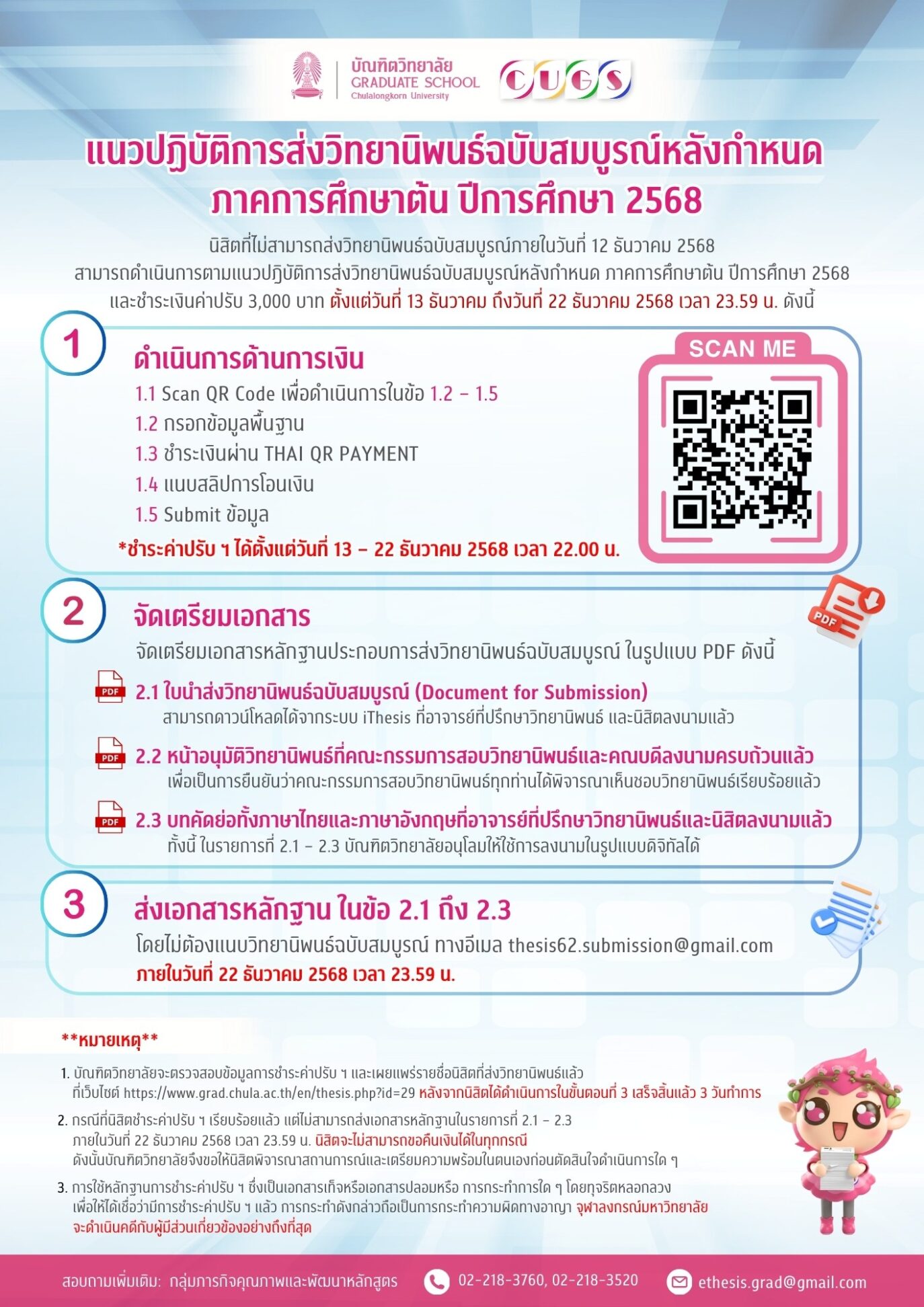 ต้องนำเอกสารส่งให้ภาควิชาฯที่อีเมลgrad@cp.eng.chula.ac.th