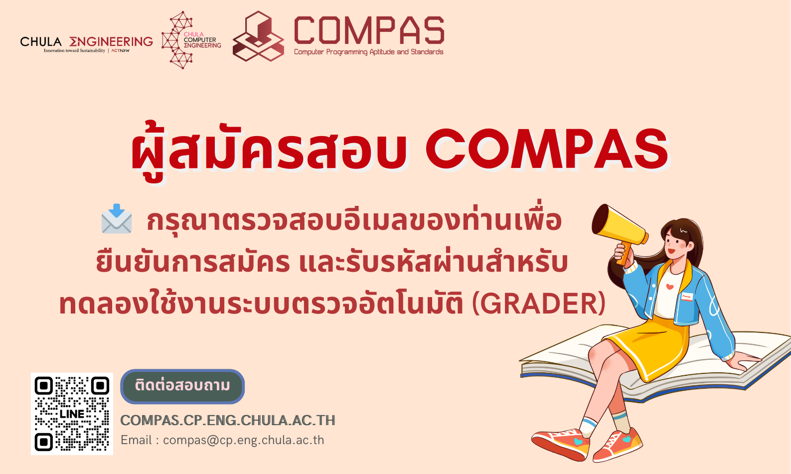 āļŠāļģāļŦāļĢāļąāļāļāļđāđāļāļĩāđāļŠāļāđāļāļŠāļĄāļąāļāļĢāđāļāđāļēāļĢāđāļ§āļĄāļāļēāļĢāļŠāļāļ āļŠāļēāļĄāļēāļĢāļāļāļđāļĢāļēāļĒāļĨāļ°āđāļāļĩāļĒāļāđāļĨāļ°āļŠāļĄāļąāļāļĢāđāļāđāļāļĩāđ https://compas.cp.eng.chula.ac.th/register/compas-py1