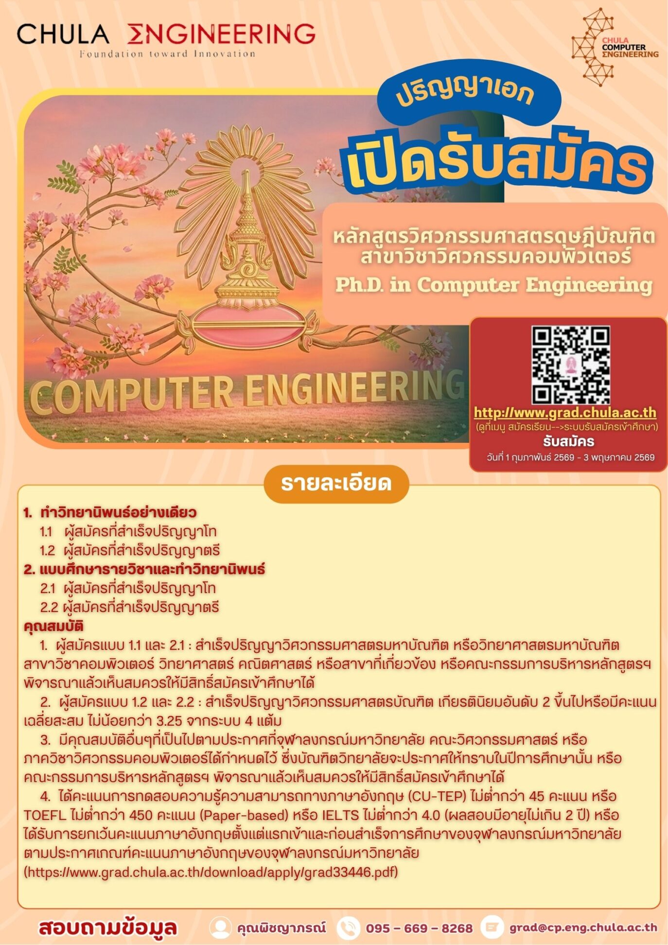 หลักสูตรวิศวกรรมศาสตรดุษฎีบัณฑิต สาขาวิชาวิศวกรรมคอมพิวเตอร์(ภาคปกติ4236-4239_PHD)>>>>>