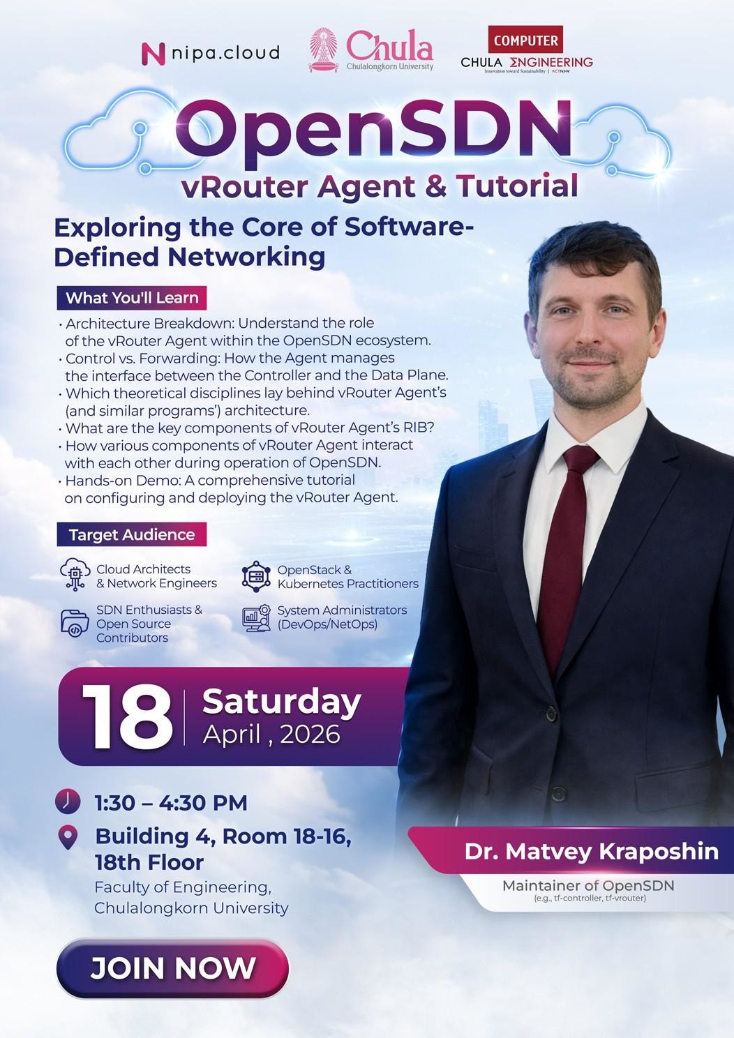 พบกับ Dr. Matvey Kraposhin จากประเทศรัสเซีย ผู้จัดการระบบ OpenSDN จะมาแบ่งปันความรู้เกี่ยวกับการทำงานของ vRouter Agent