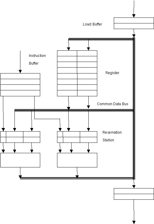 Figure A CPU with two floating point functional units each with two reservation stations, and one load one store buffer