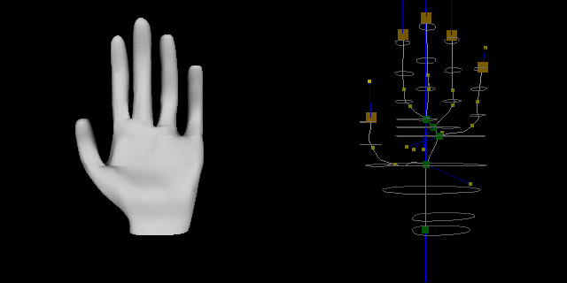 | เรปกราฟ แสดง Topology information ของวัตถุรูปมือ ซึ่งสามารถใช้แทนโครงสร้างภายในหรือ skeleton ของมือในการเคลื่อนไหวหรือทำอนิเมชั่น |